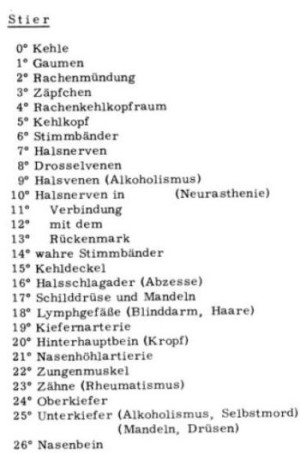 Anatomische Entsprechnungen der Tierkreisgrade nach Ebertin